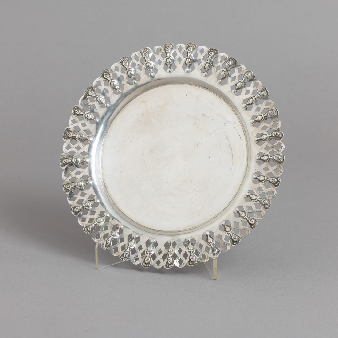 Em prata portuguesa contraste águia (1938-1984) de 833, aba relevada e vazada. Sinais de uso, pequenas amolgadelas e leves pontos de oxidação.