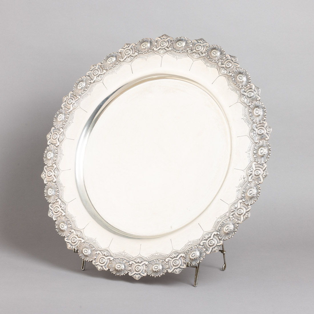 Em prata portuguesa contraste javali (1887-1937) de 833, marcada Reis Fos. Lda. - Porto, aba relevada e gravada decorada "flores e enrolamentos". Sinais de uso e pequena amolgadela.