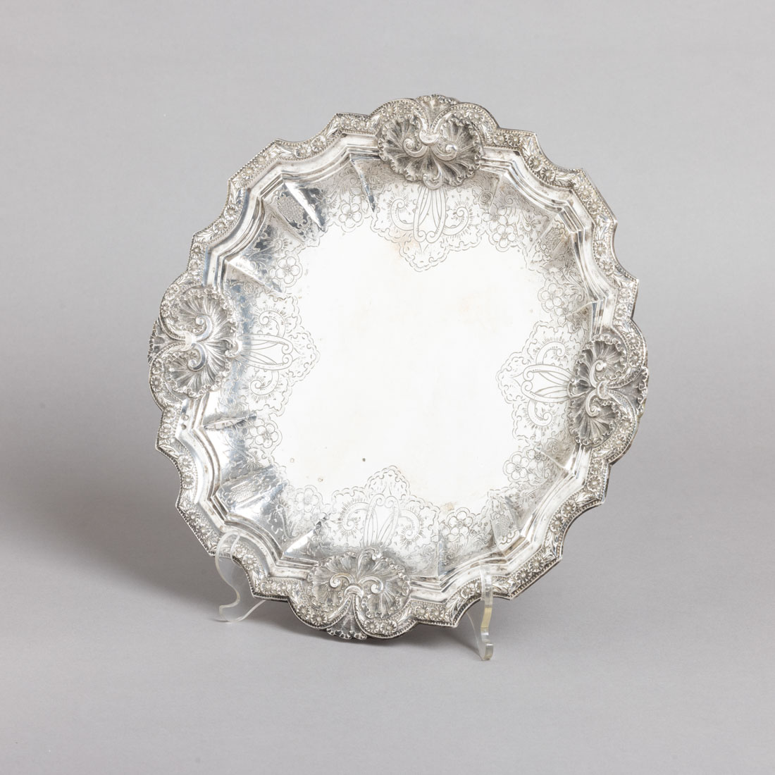 Em prata portuguesa contraste javali (1887-1937) de 833, decoração relevada e gravada "enrolamentos e flores", pés de garra. Sinais de uso.