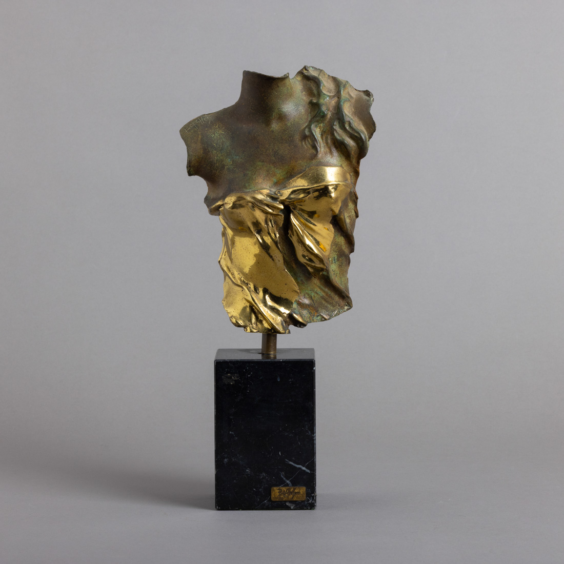 Escultura em bronze patinado e dourado (37/500), assinada, base mármore (pequenos defeitos).