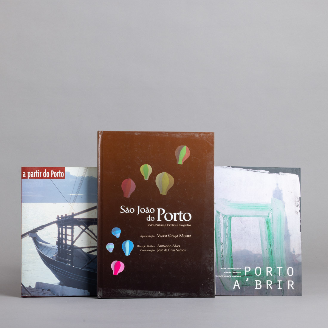 "Porto A'brir" por Pedro Dantas, Rita Burmester e Ricardo Tadeu Barros, edições ASA, Porto, 2001; "A partir do Porto", catálogo da exposição "RONDOM PORTO", ICEP, 2000, e "São João do Porto" com direção gráfica de Armando Alvez. Sinais de uso, manchas dehumidade.