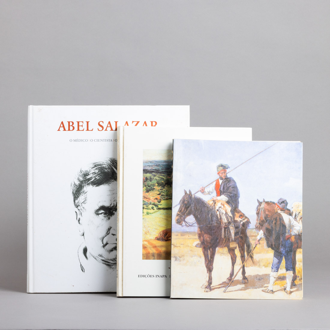 "Silva Porto e o Naturalismo em Portugal" por Maria Emília Vaz Pacheco; "José Malhoa: Pintura Portuguesa do Século XIX" por Paulo Henriques e "Abel Salazar: O Médico, O Cientista, O Artista, O Cidadão", Programa das Comemorações do Centenário da RepúblicaPortuguesa. Sinais de uso e alguns defeitos.