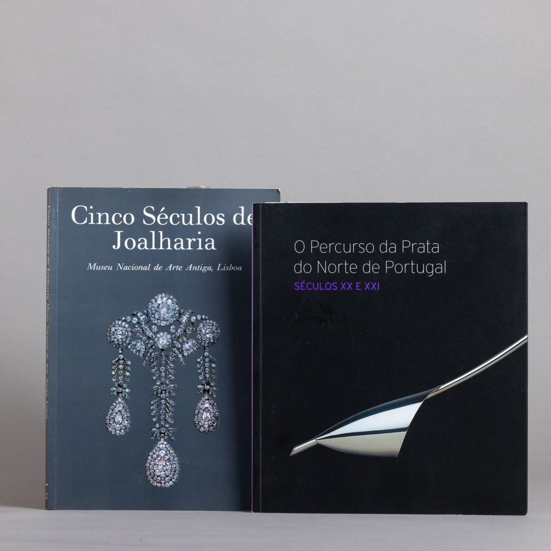 "Cinco Séculos de Joalharia" por Leonor d'Orey. Museu Nacional de Arte Antiga, Lisboa, 1995. "O Percurso da Prata do Norte de Portugal Séculos XX e XXI", Coordenação editorial por Ana Campos, Associação Empresarial de Portugal. Um com a lombada descolada.