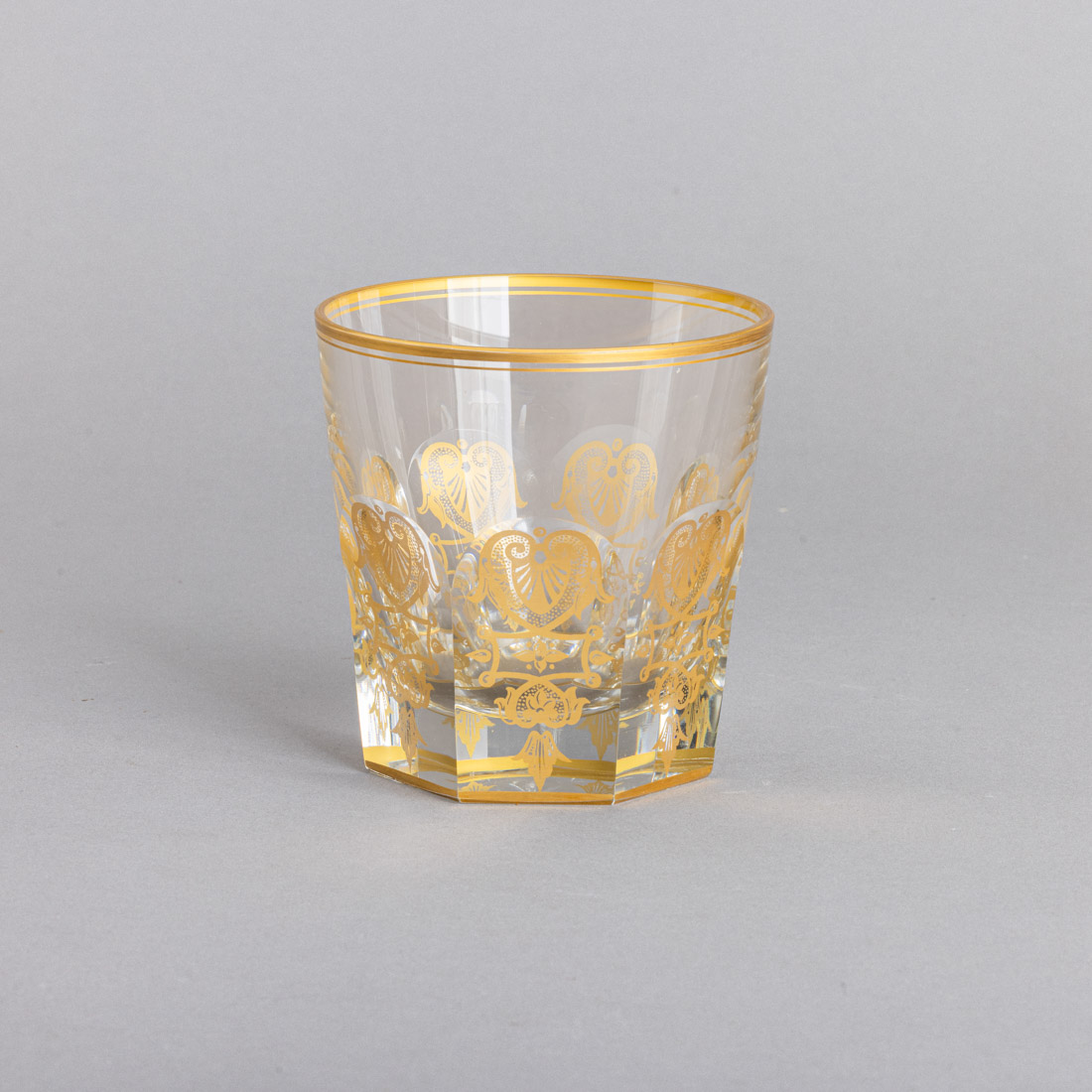 Em cristal de Baccarat, decoração facetada a dourado, modelo Harcourt Empire. Marcado. Sinais de uso.