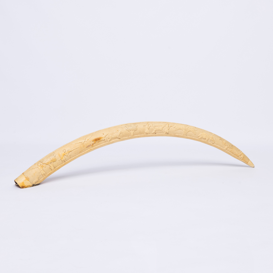Em marfim esculpido, decoração relevada com animais. Africa.