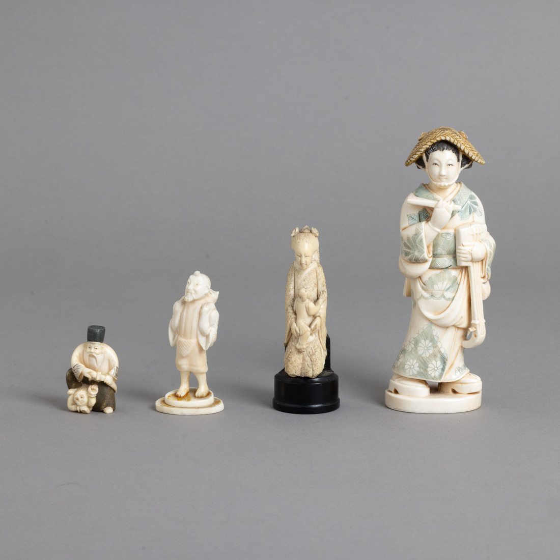 Esculturas em osso, decoradas com gravados uma com base em madeira. Duas marcadas. Pequenas falhas, leves fissuras e uma com vestígios de cola.