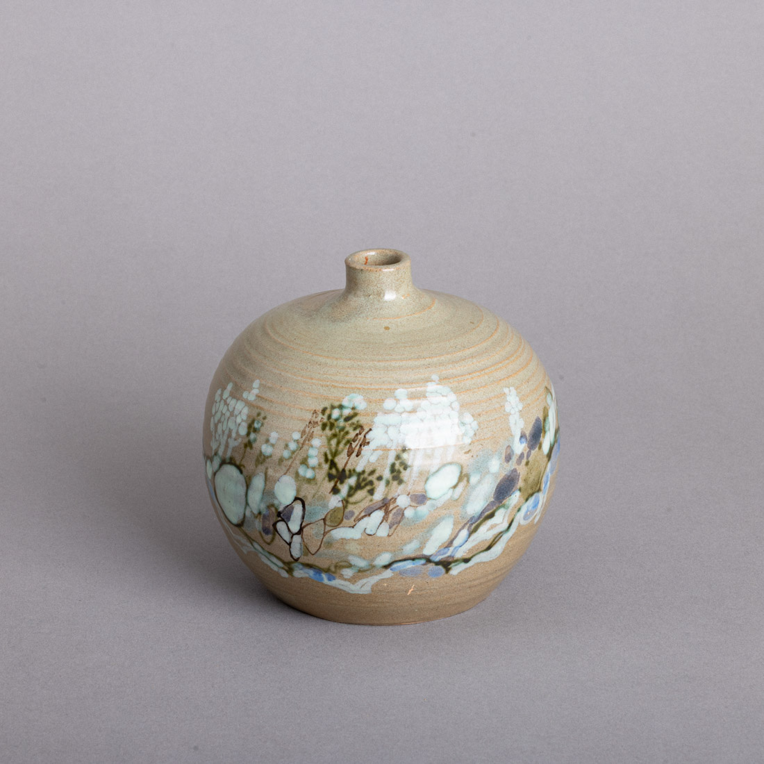 Em cerâmica vidrada, decoração policromada "elementos vegetalistas", marcada na base. Sinais de uso e pequena falha no vidrado.