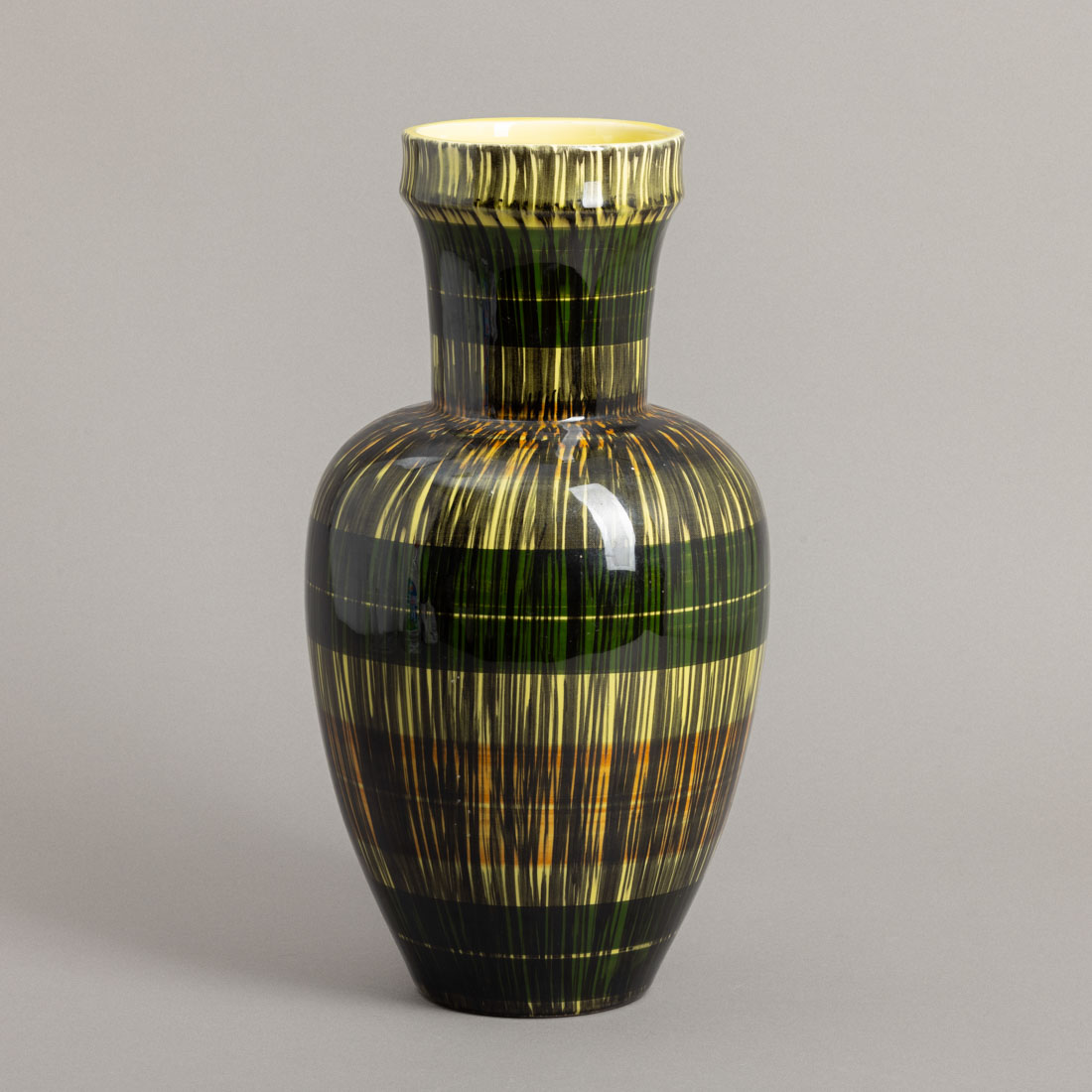 Em cerâmica vidrada, decoração policromada, marcada Saint Clement, France. Sinais de uso e cabelos na base.