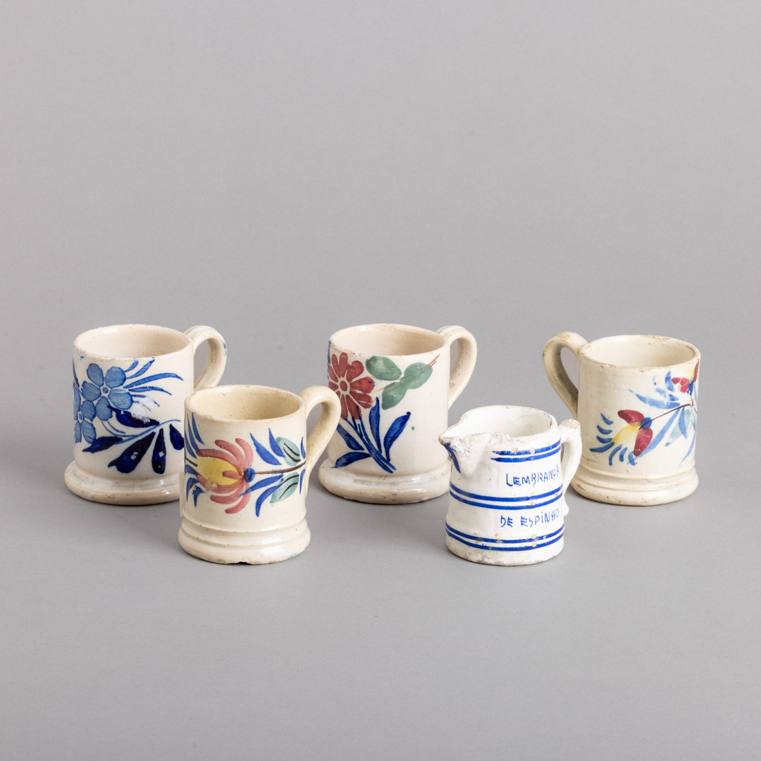 Em faiança portuguesa, decoração diversa. Sinais de uso, esbeiçadelas e uma com falhas.