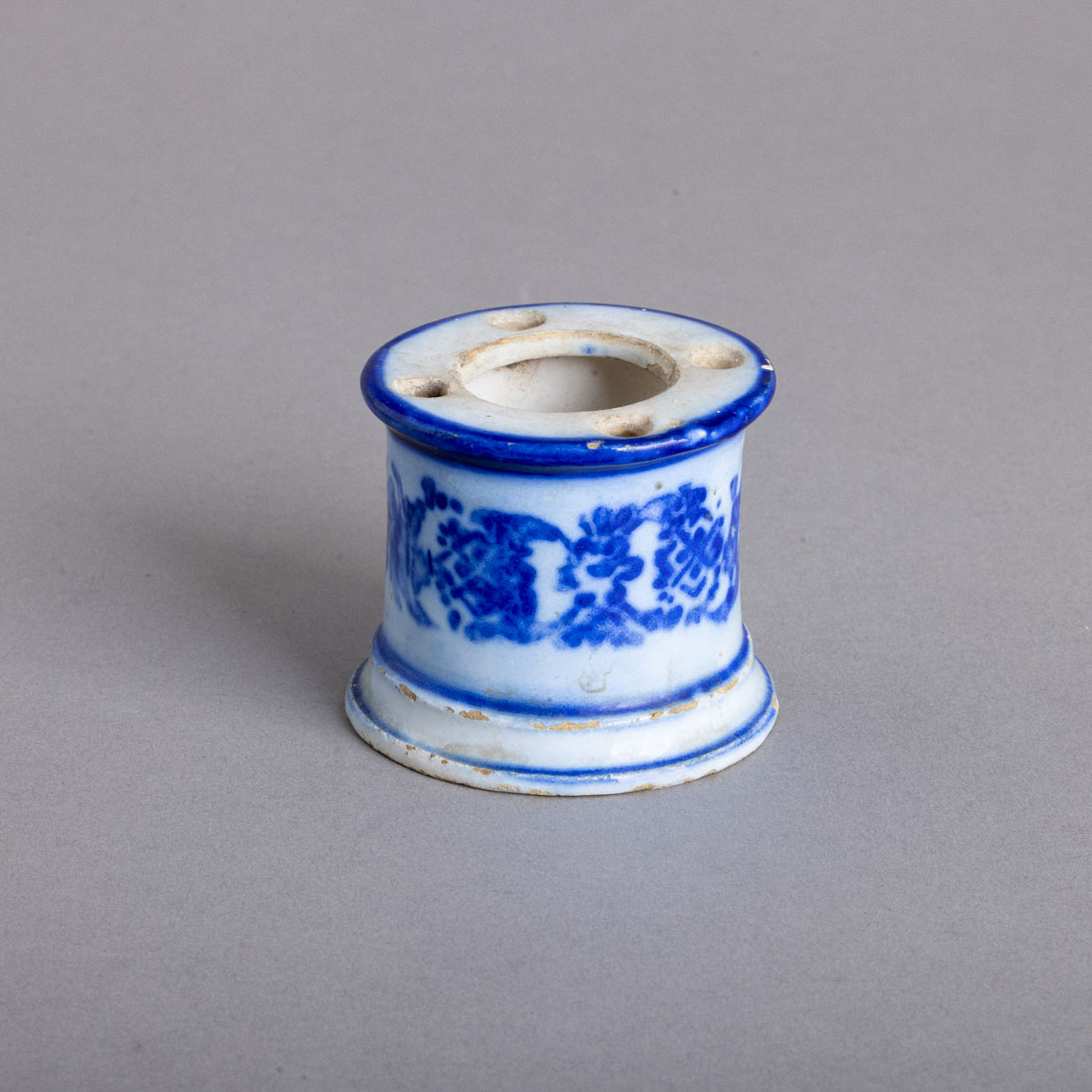 Em faiança portuguesa, decoração a azul "elementos vegetalistas". Séc. XIX/XX. Sinais de uso e pequenas esbeiçadelas.