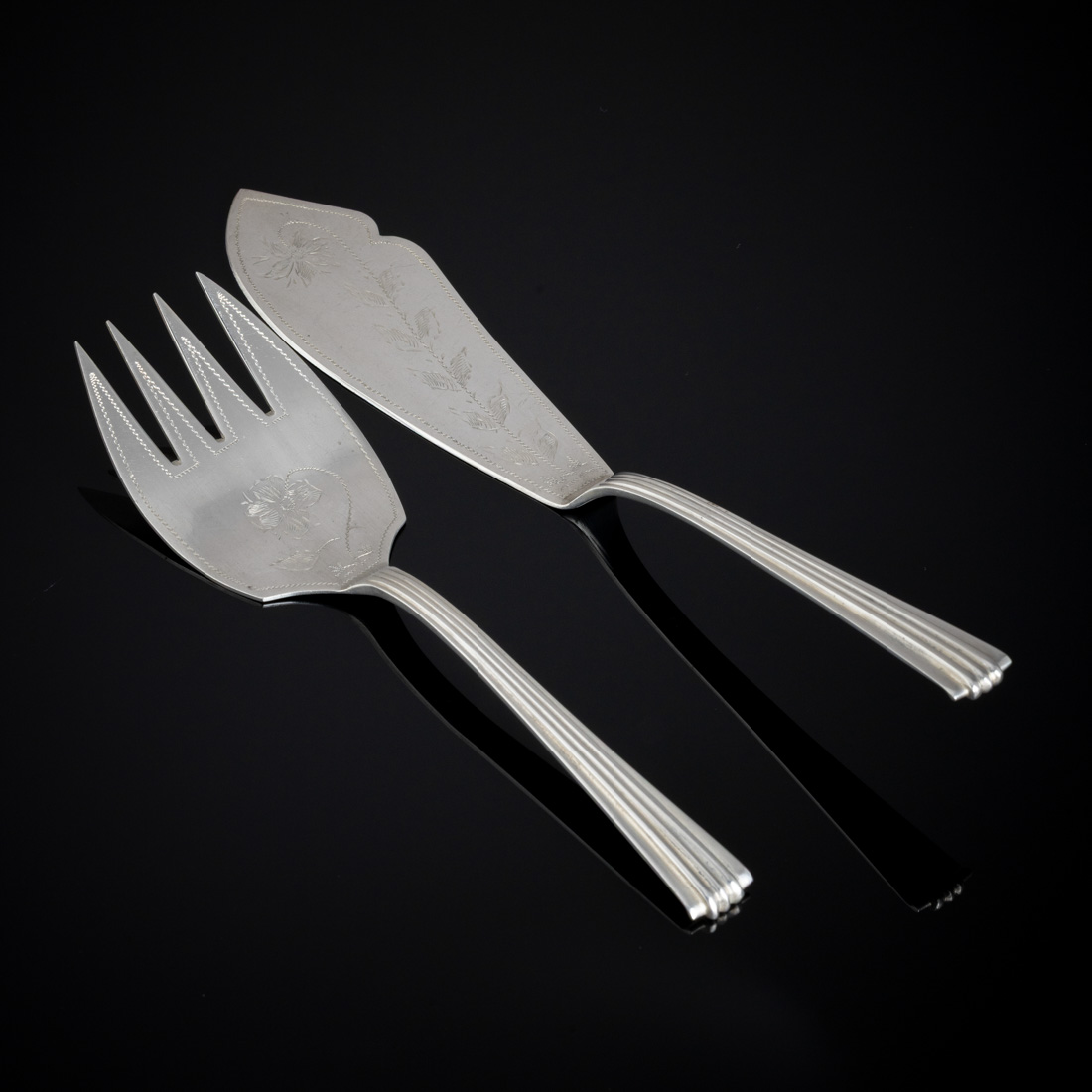 Em prata portuguesa contraste águia (1938-1984) de 916 - 1º. Título, decoração relevada e gravada "caneluras e flores". Sinais de uso.