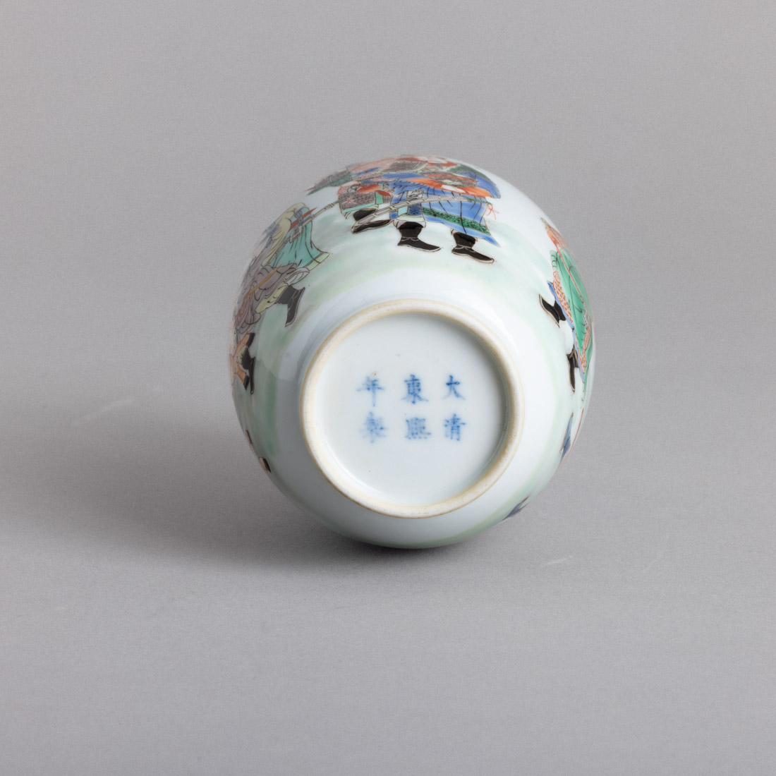 Em porcelana da China, decoração policromada "guerreiros e cavalo". Marcada. Sinais de uso.