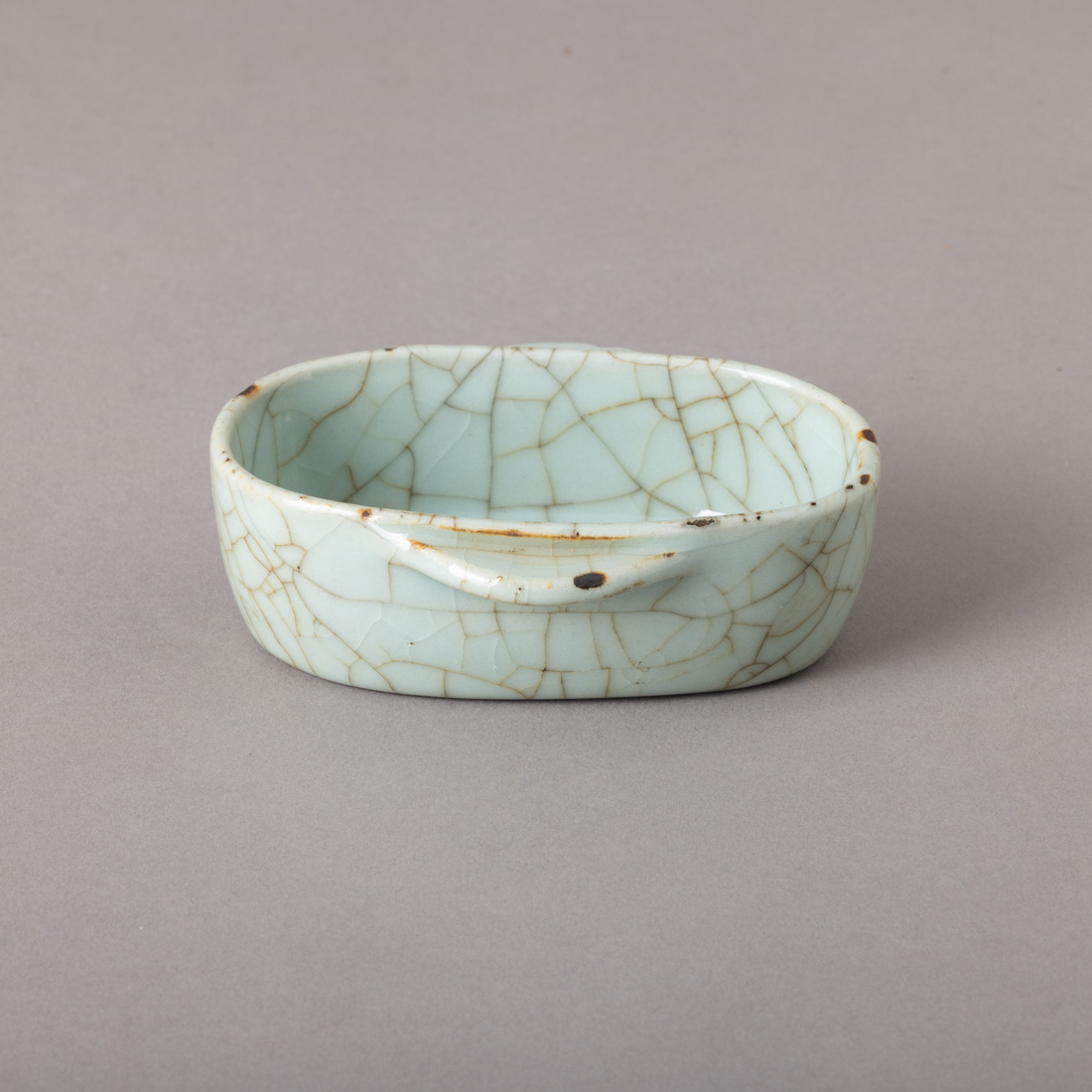 Em cerâmica chinesa vidrada, decoração monocroma craquelé "Celadon". Marcado. Sinais de uso, pequenas falhas no vidrado.