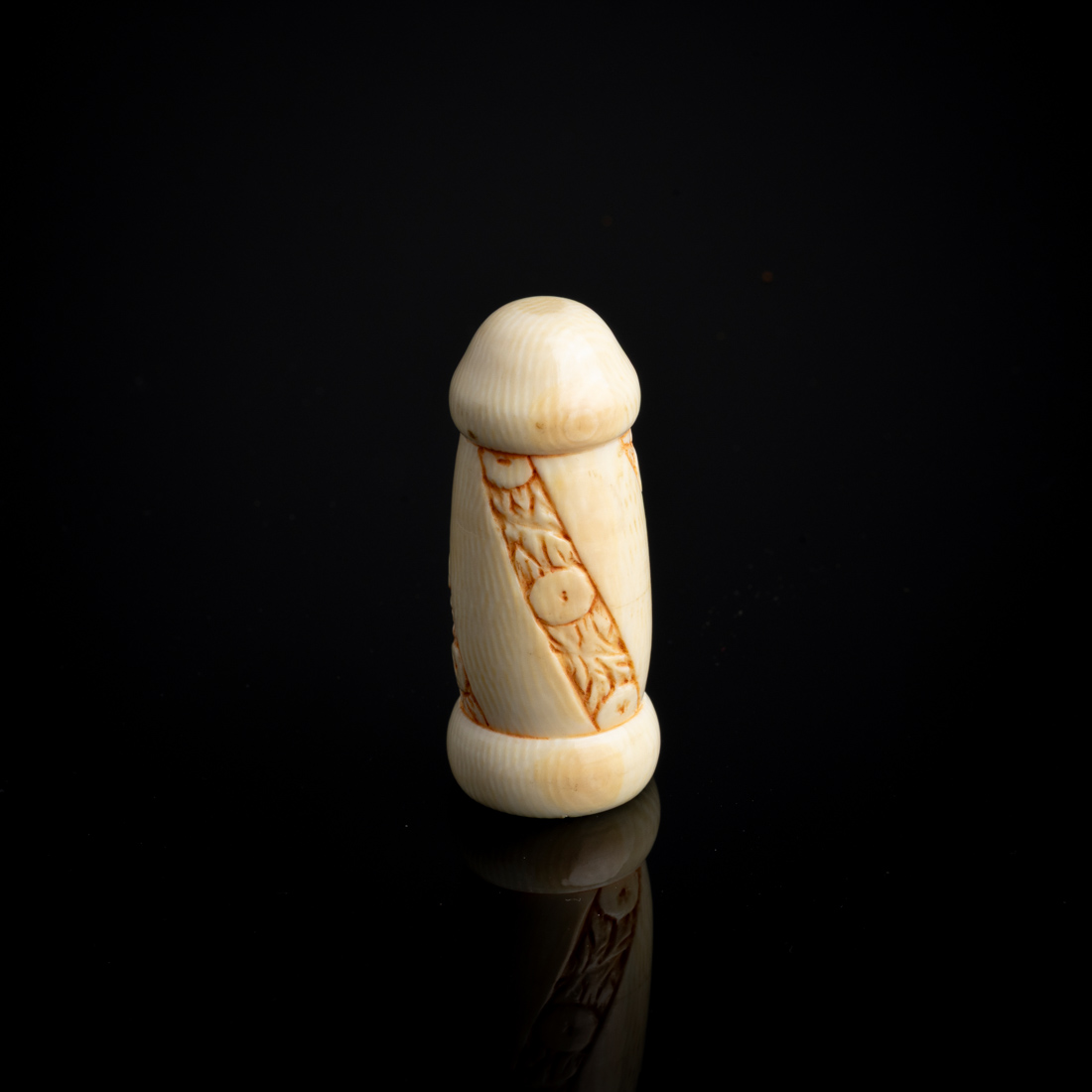 Esculpido em osso, decoração gravada "flores". Sinais de uso e ínfima falha.