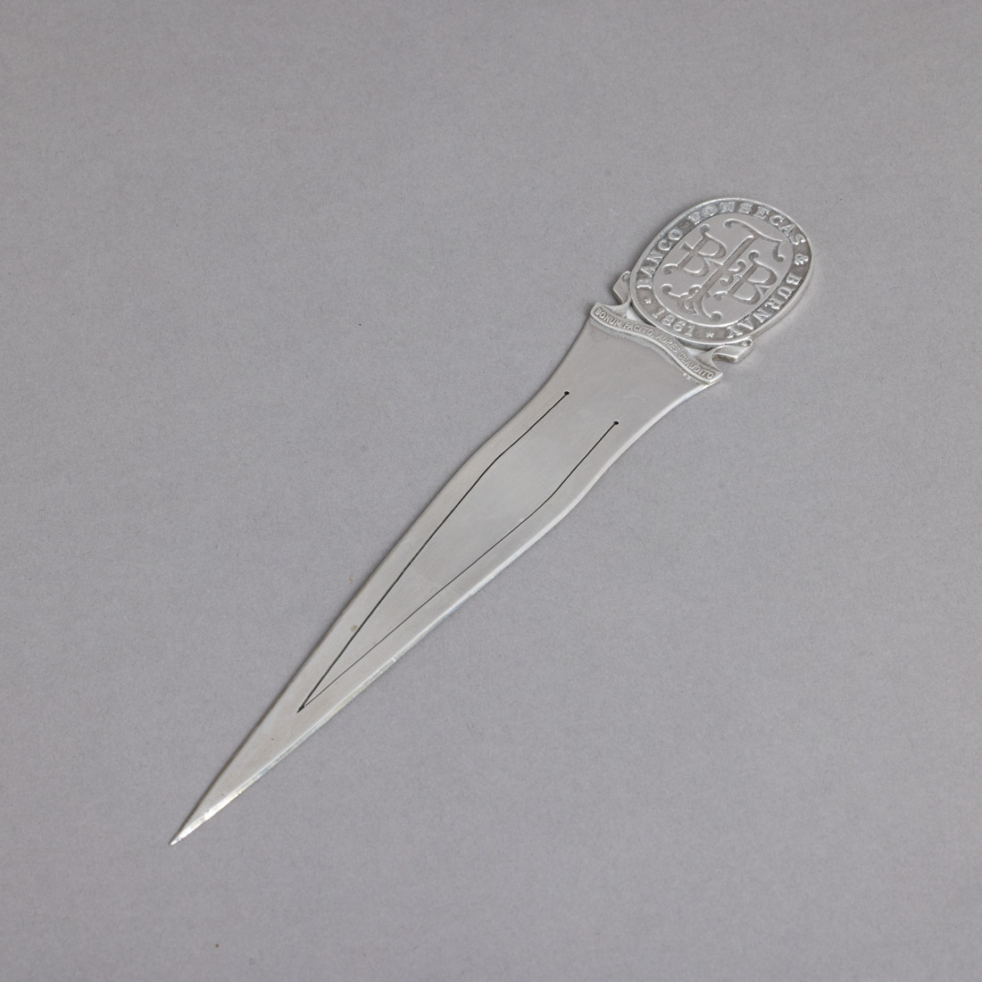 Em prata portuguesa contraste águia (pós 1985) de 835, decoração relevada "Banco Fonseca & Burnay - 1861". Sinais de uso e leves amolgadelas.
