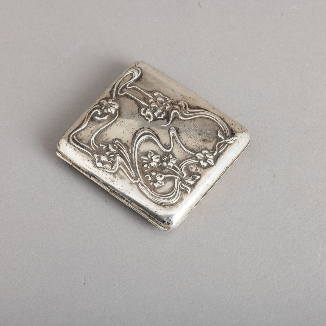 115. CIGAREIRA ARTE NOVA Em prata portuguesa contraste javali de 833, P.A. 73 g.