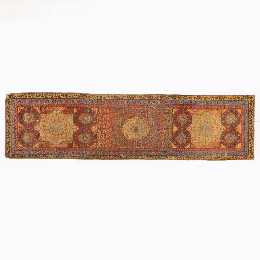 Em lã, decoração policromada com padrão geométrico. Sinais de uso e pequenos defeitos.