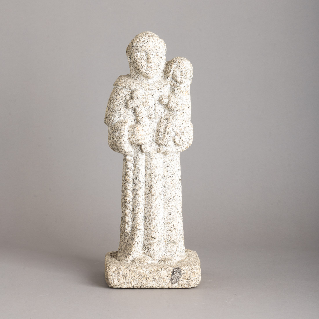20. SANTO ANTÓNIO COM O MENINO Email 150 Escultura em granito.Sinais de uso.Dim.: 40 cm. € 80 € 150 Solicitar informação adicional Voltar a: 2024 | 2º Leilão Presencial 19. SETE CANDEEIROS A PETRÓLEO 21. CRIADO MUDO Escultura em granito.Sinais de uso.Dim.: 40 cm. € 80 € 150