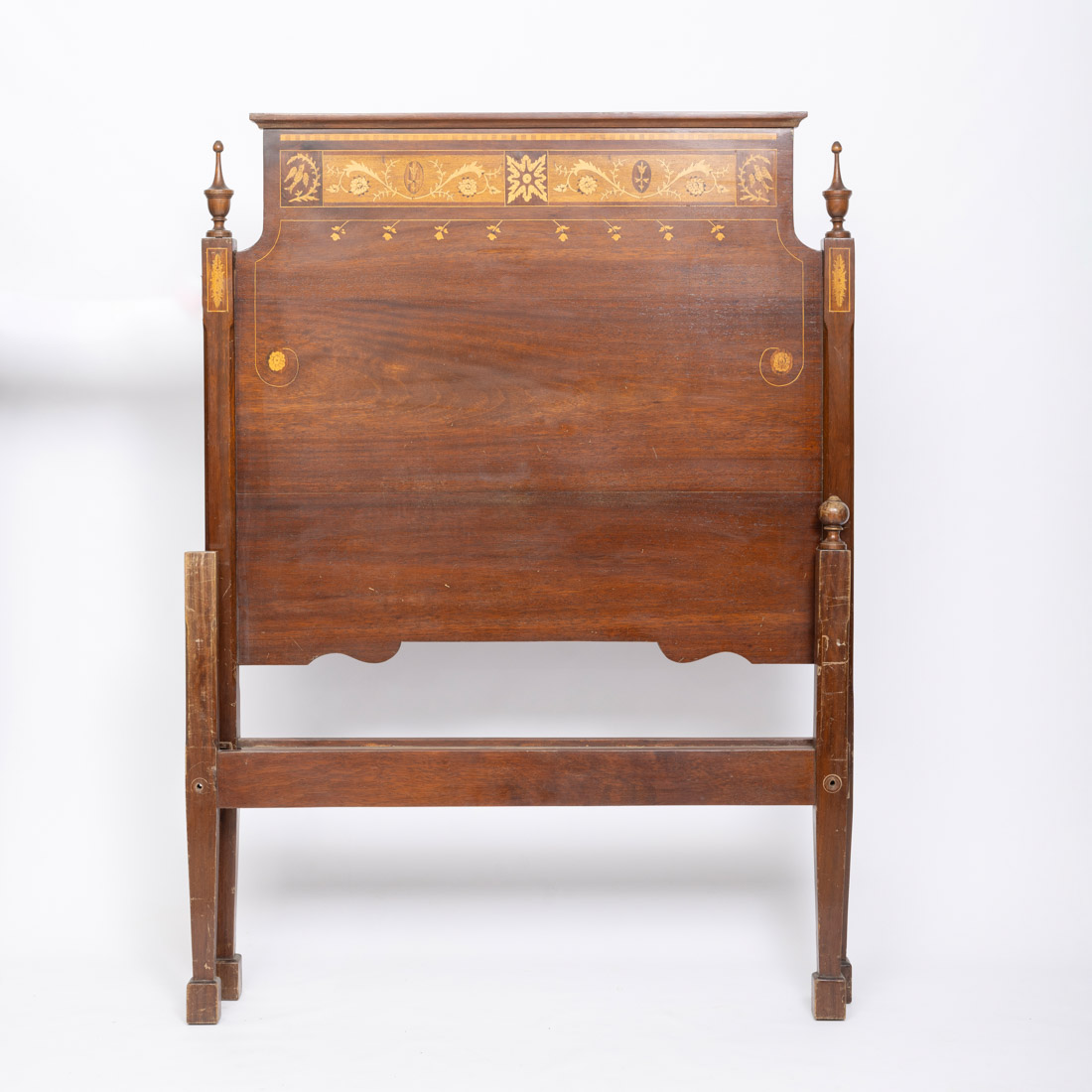 Estilo D. Maria, em mogno e outras madeiras, decoração com embutidos "flores e pássaros". Pequenas falhas e defeitos.