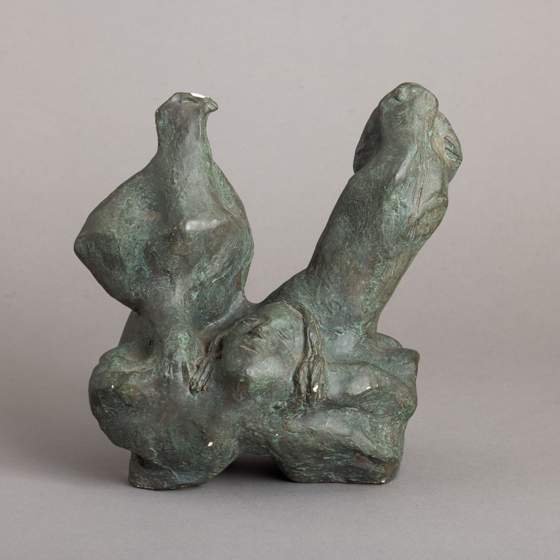 Escultura em gesso patinado, assinada. Pequenas falhas e pequena colagem.