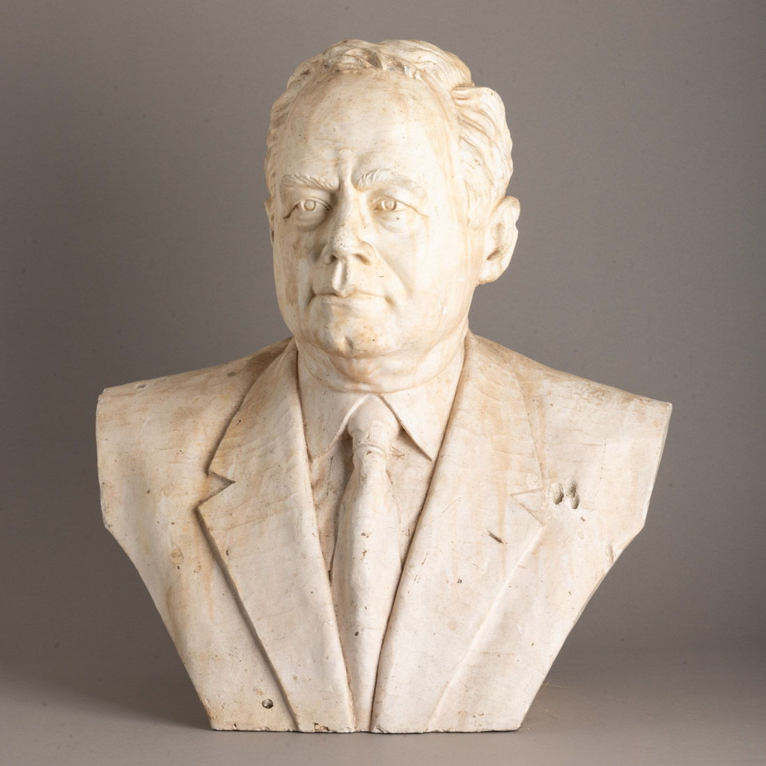 Escultura em gesso patinado, assinado e datada 18-02-92. Falhas e pequenos defeitos.