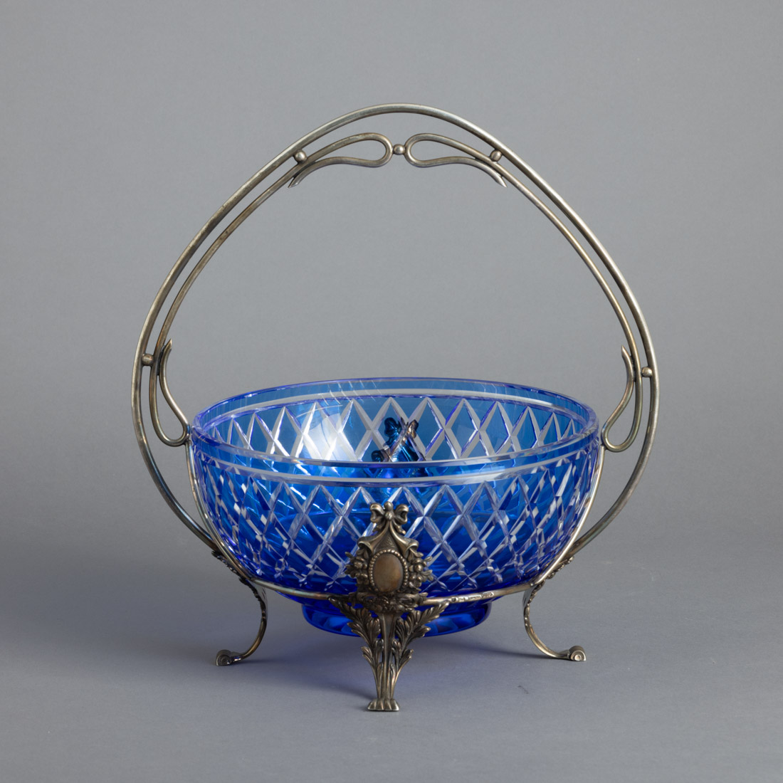 Em cristal bicolor lapidado, estrutura em prata portuguesa contraste águia (pós 1985) de 925, marcada Topázio, decoração relevada com elementos vegetalistas. Sinais de uso.