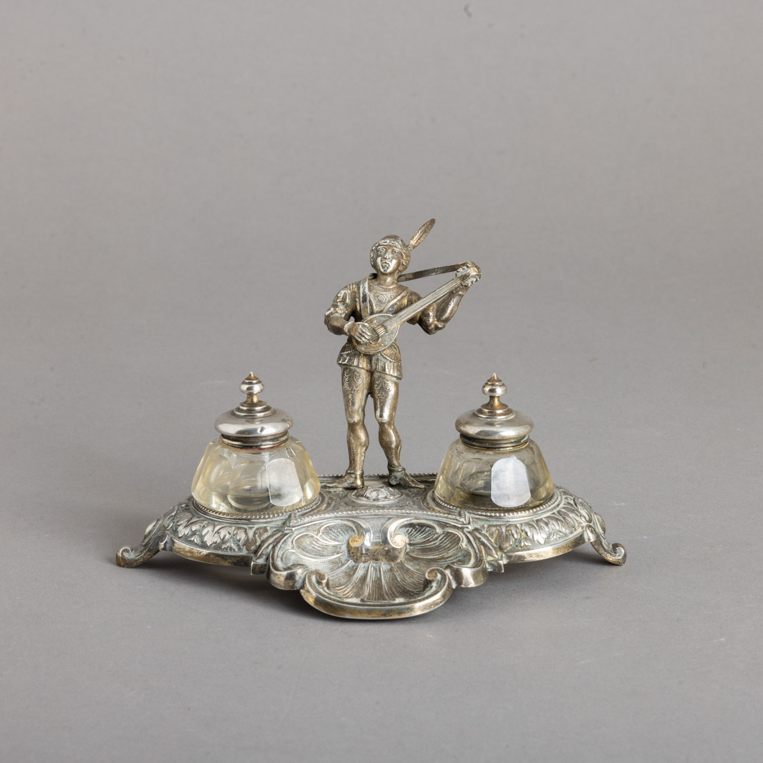 274. ESCRIVANINHA "PAJEM COM GUITARRA" Em prata alemã de 800, P.170 g