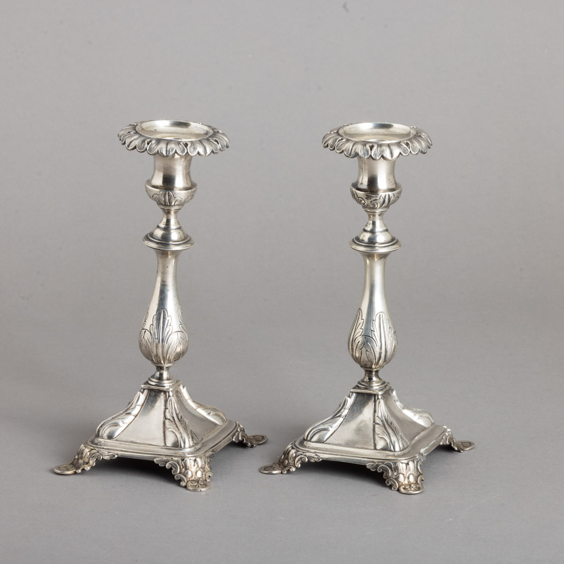 279. PAR DE CASTIÇAIS Em prata portuguesa do Séc. XIX. P.A. 660 g.