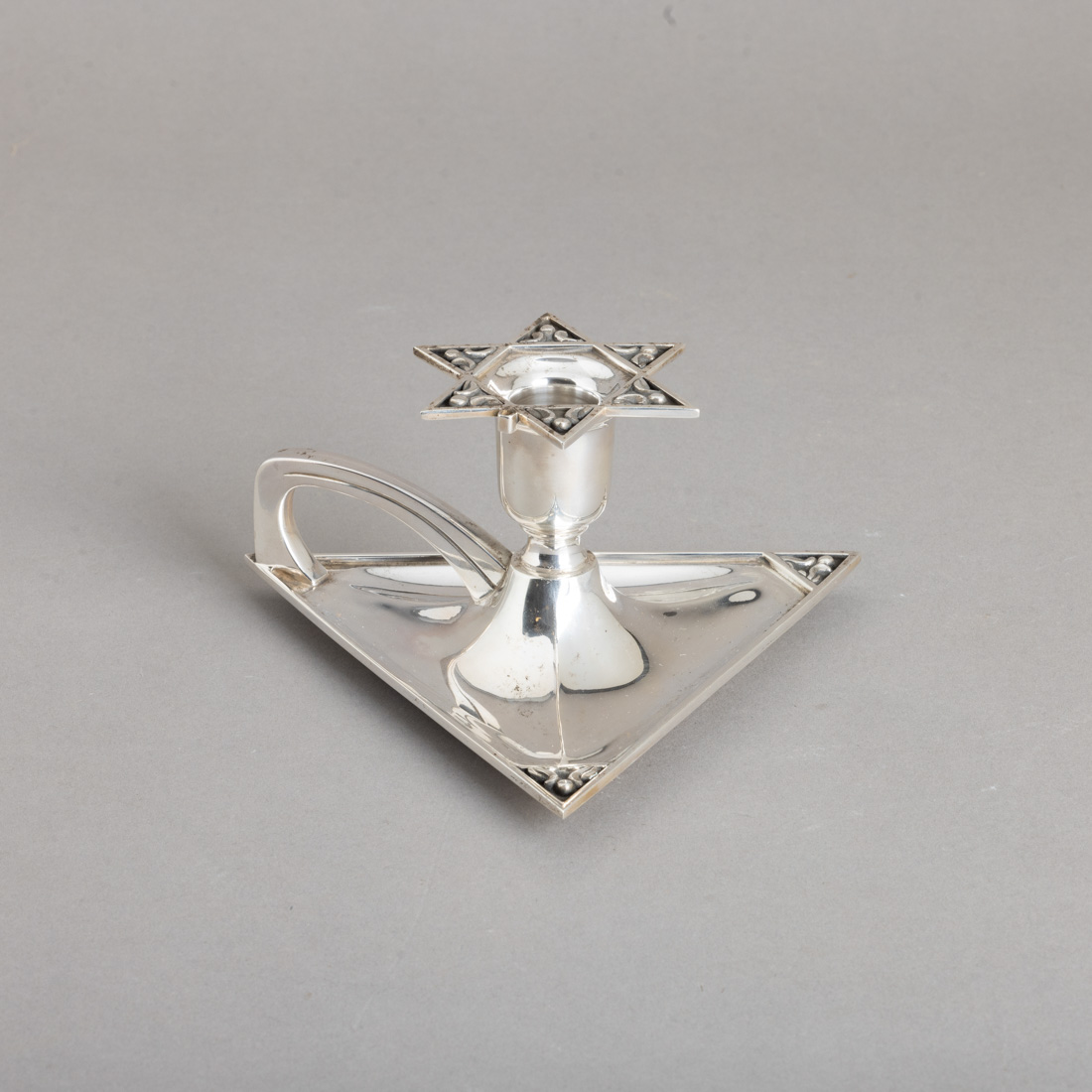 Em prata portuguesa contraste águia (pós 1985) de 925, estilo Arte Nova, de base triangular. Sinais de uso.