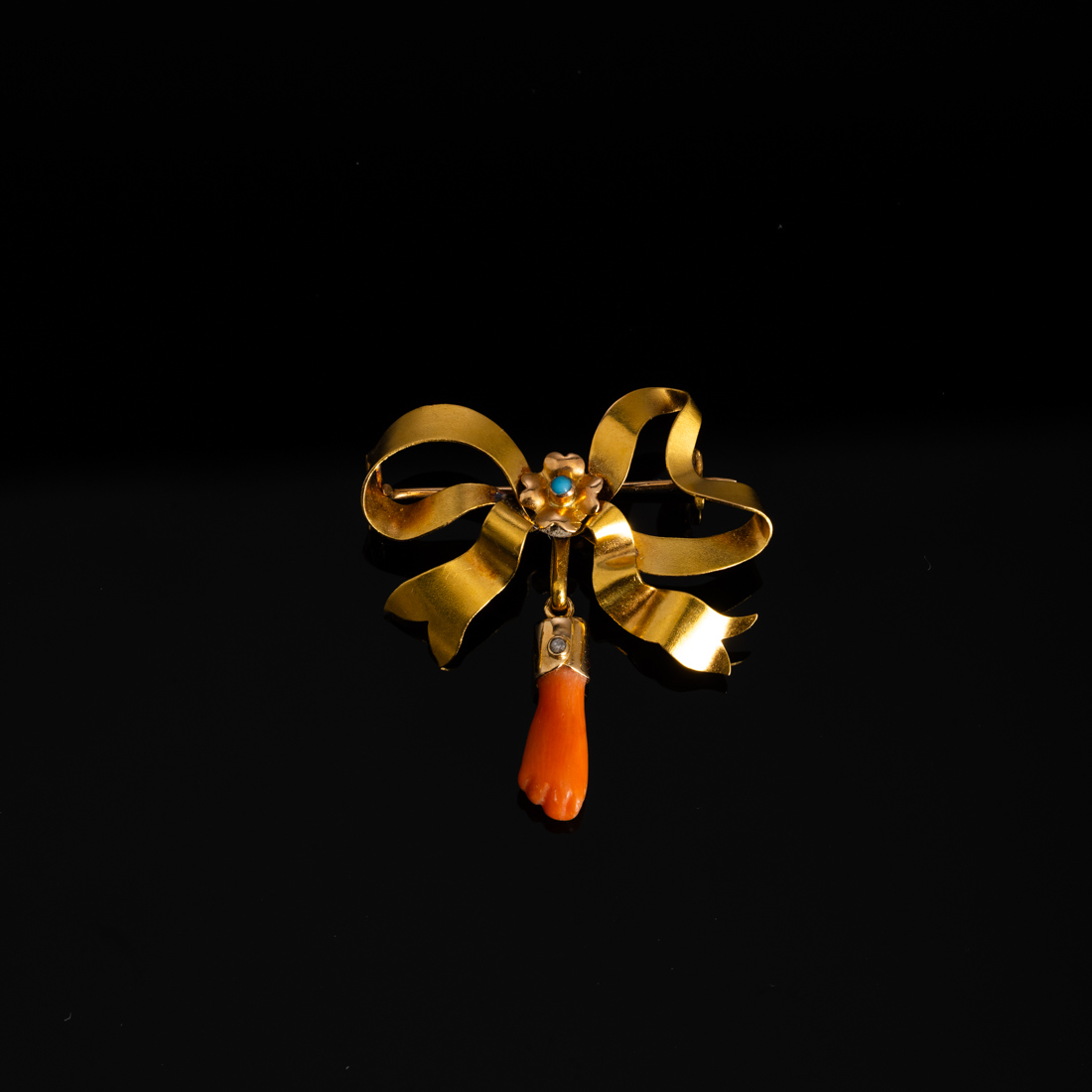 Em ouro português de 19.2Kt., contraste tigre (1887-1937) com coral do Mediterrâneo. Sinais de uso.