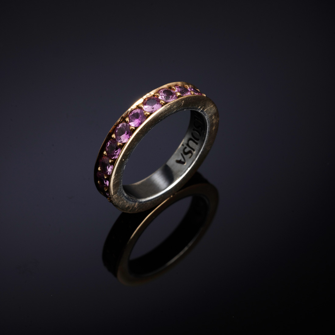 Em ouro português de 19,2Kt., contraste veado e prata águia de 925 (pós 1985) cravejado com pedras coloridas, marcado Gil Sousa. Sinais de uso.