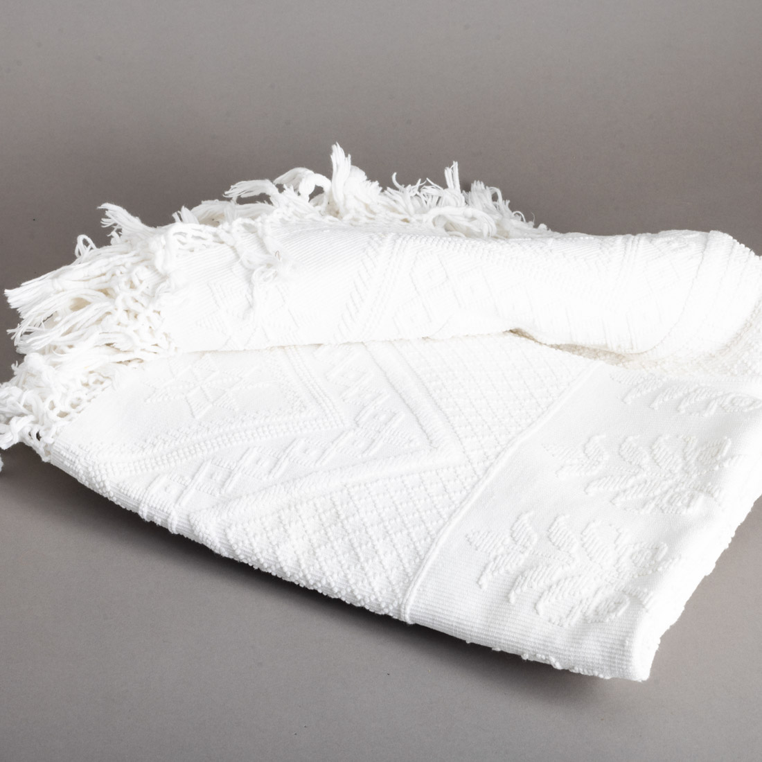 Em algodão, feita em tear manual, dita "de puxados", com armas reais. Sinais de uso e pequena mancha.