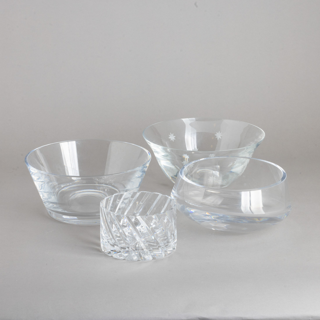 Em cristal Atlantis, decoração moldada, uma gravada a fosco "Stardust", com ínfima esbeiçadela. Sinais de uso.
