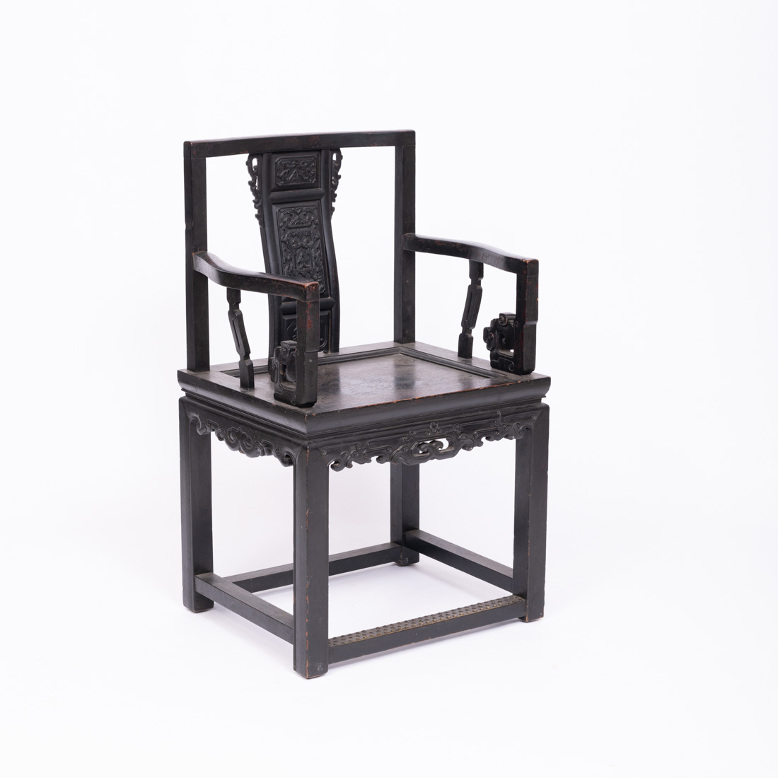 Em madeira exótica com entalhamentos, lacada a negro