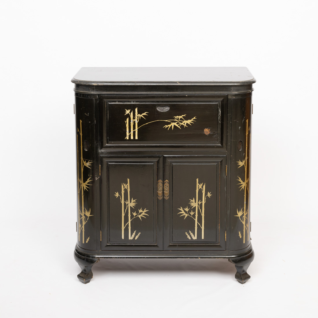 Em madeira lacada a negro, decoração a dourado "bambus e pássaros". Pequenas falhas, defeitos e xilófagos.