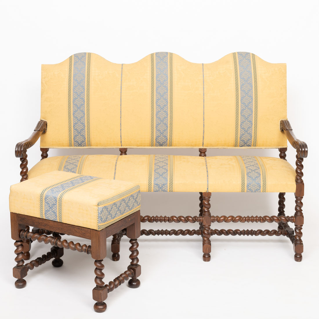 59. CANAPÉ, PAR DE CADEIRAS, CADEIRÃO DE BRAÇOS E BANCO