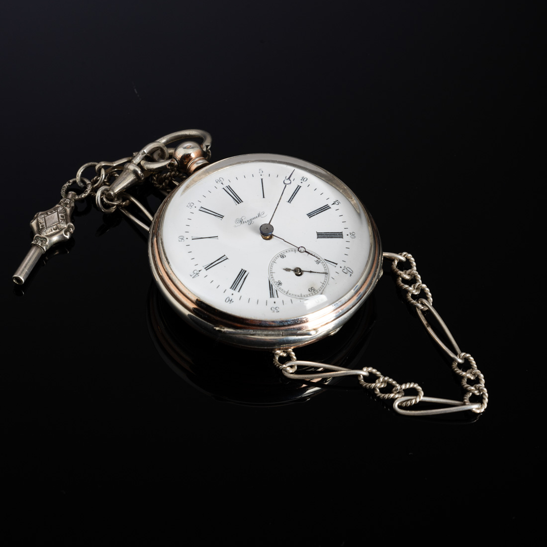 619. RELÓGIO DE BOLSO BREGUET COM CORRENTE E CHAVE