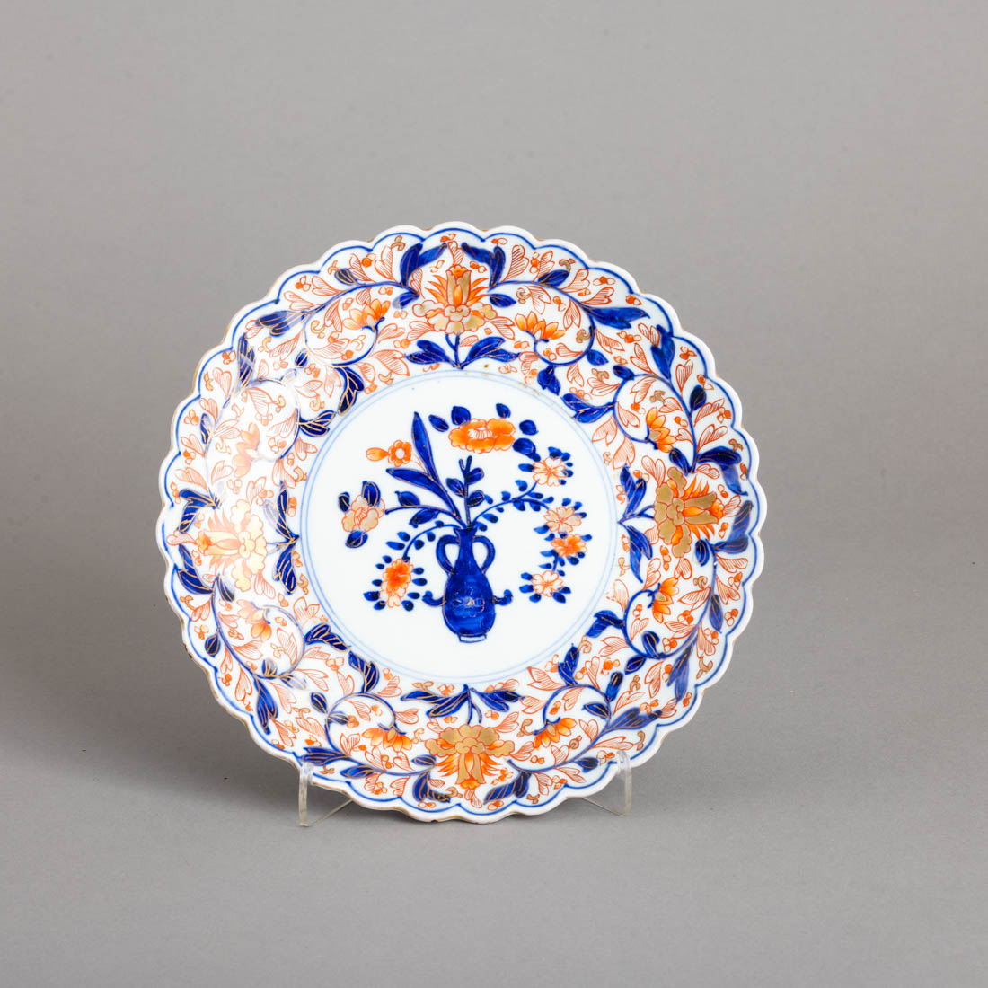Em porcelana do Japão, decoração "Imari" a azul, rouge de fer e a dourado "flores". Sinais de uso, esbeiçadela.
