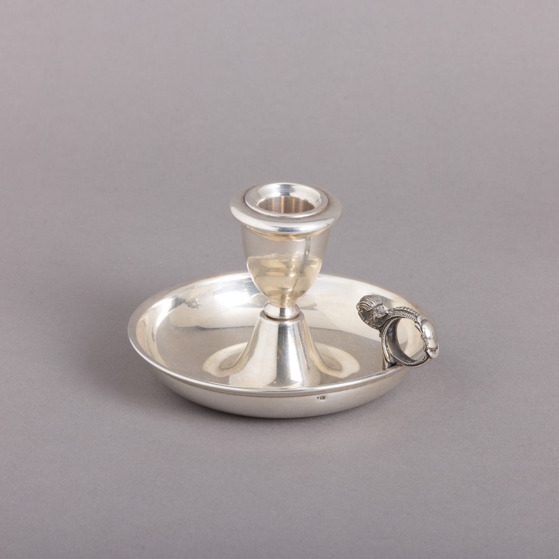 Em prata portuguesa contraste águia (pós 1985) de 925, decoração lisa, pega relevada "motivos vegetalistas". Sinais de uso.
