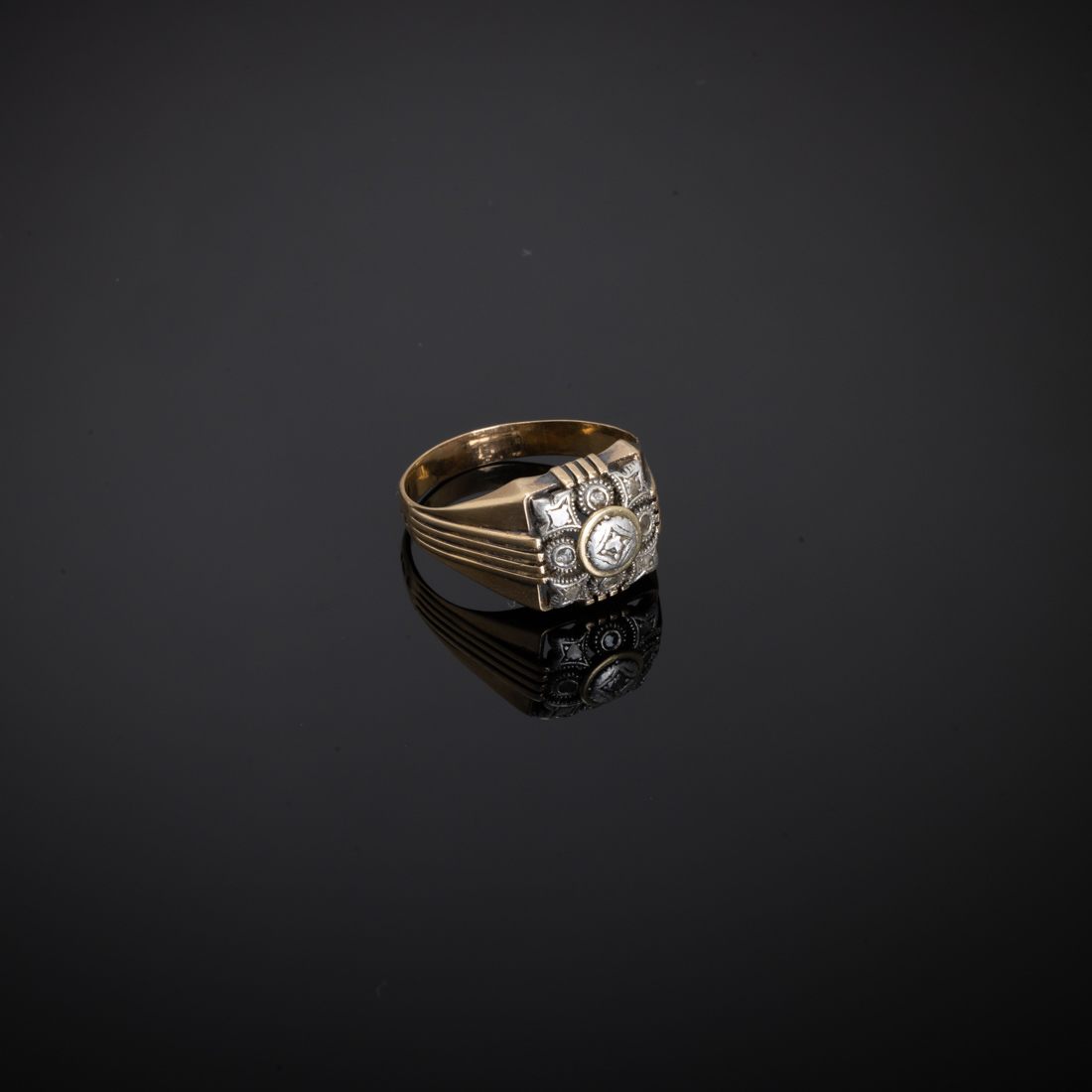 Em ouro português de 19,2Kt., e prata contraste cão e galo (1938-1984), cravejado com diamantes em talhe rosa. Sinais de uso.