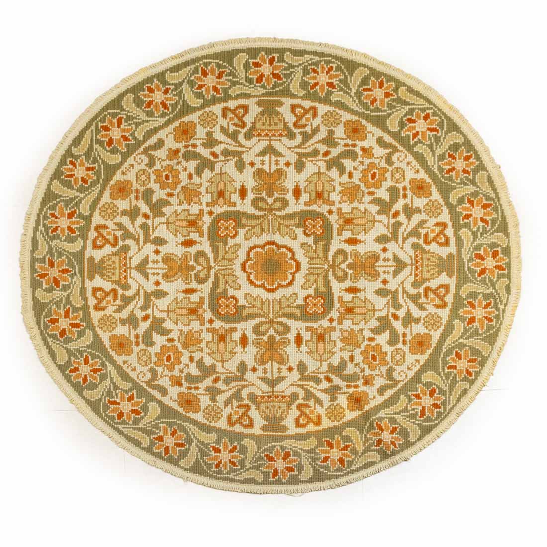 Bordado a fio de lã, decoração policroma com motivos vegetalistas. Sinais de uso e pequenos defeitos.
