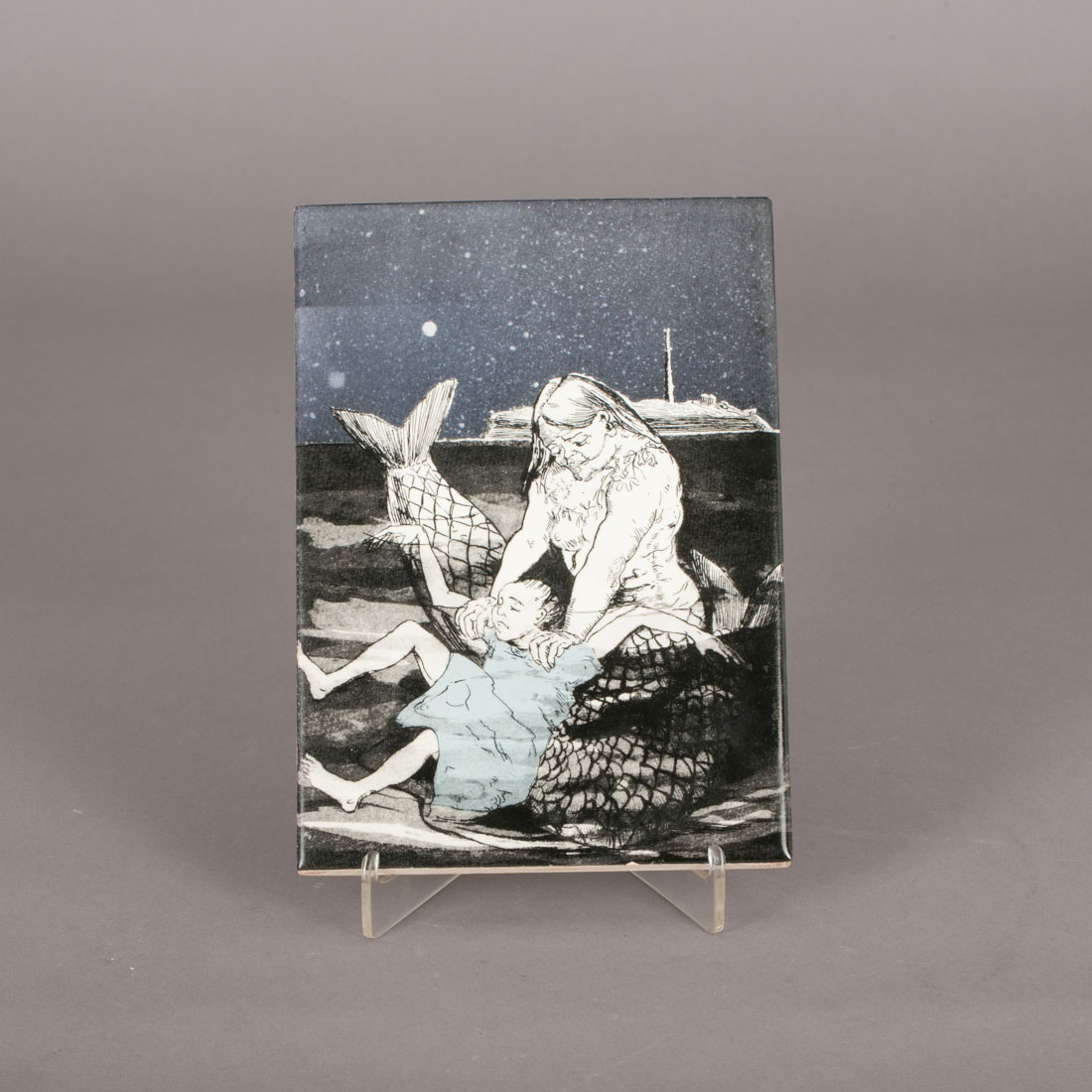 Em cerâmica vidrada, decoração policromada, fabrico Viúva Lamego, assinado a carimbo. Sinais de uso.