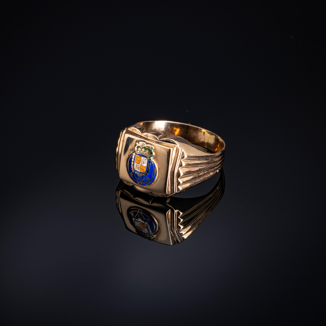 Em ouro português de 19,2Kt., contraste veado (pós 1985) decoração relevada com esmaltes policromos. Sinais de uso.