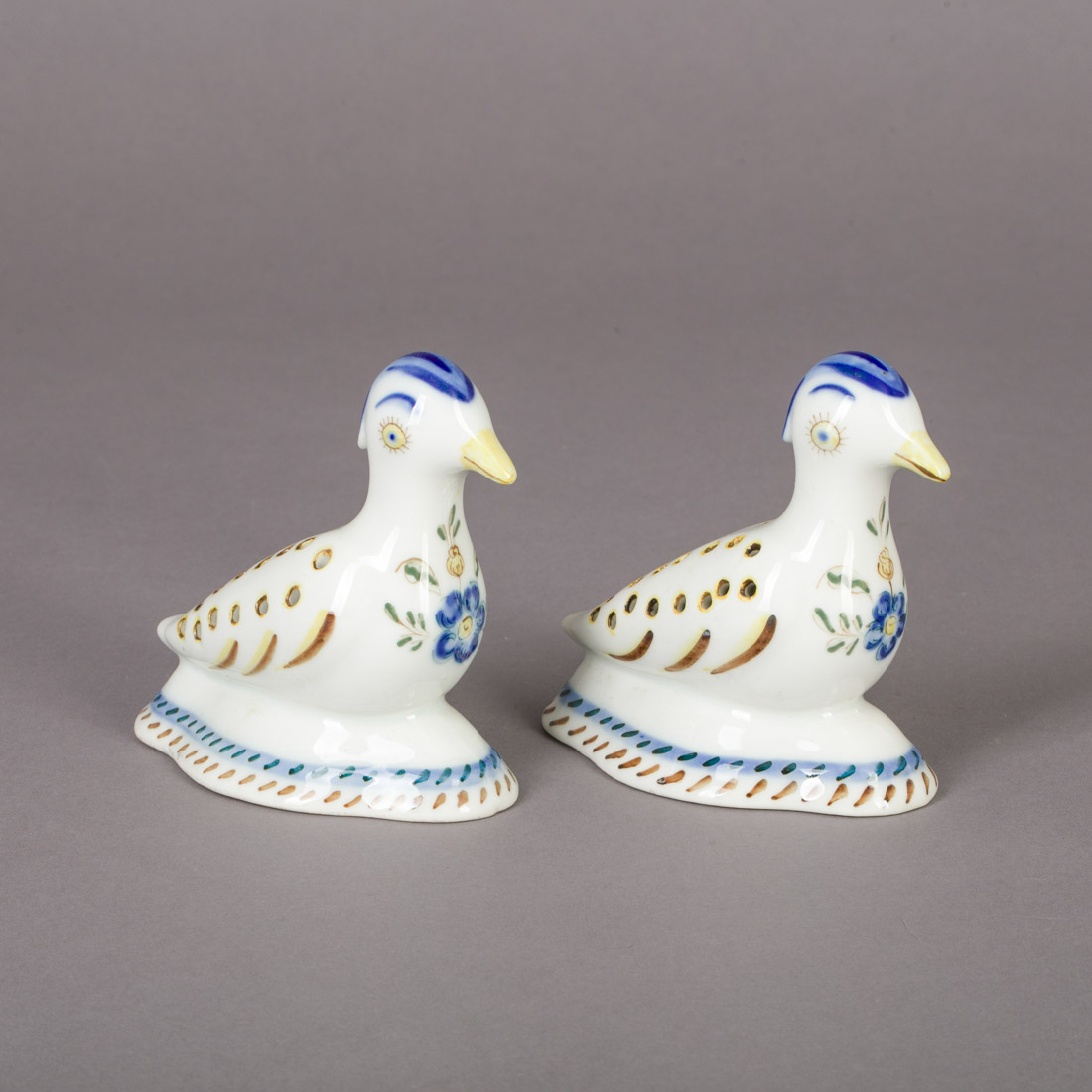 Esculturas em loiça de Viana do Castelo, decoração policromada com motivos florais. Sinais de uso.