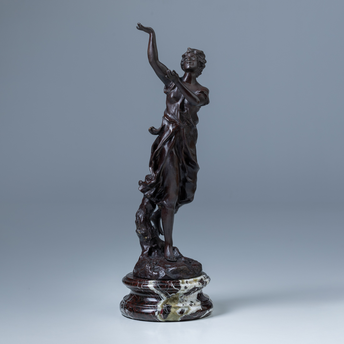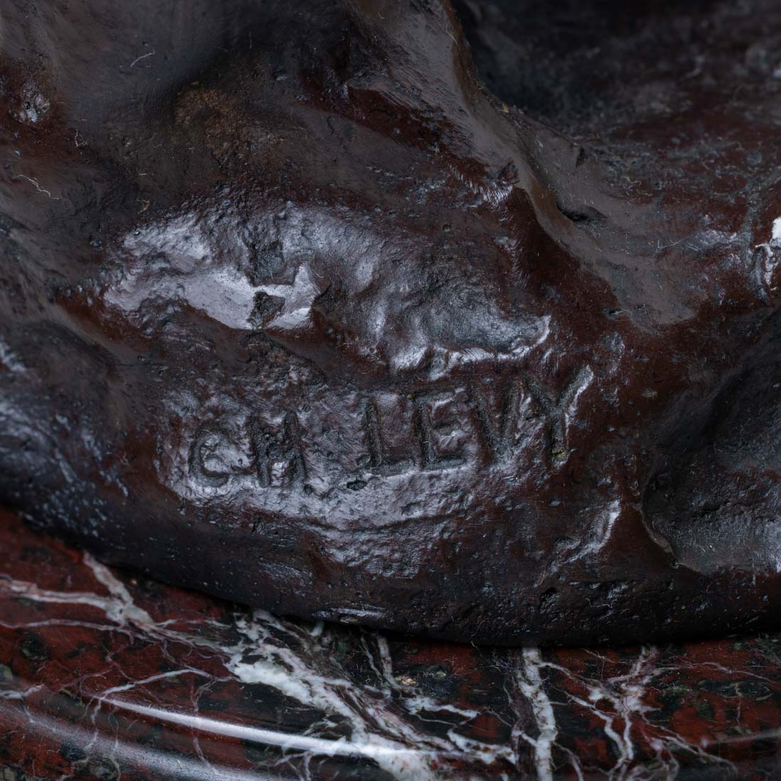 Escultura em bronze patinado, assinada CH. LEVY, base em mármore. Sinais de uso.