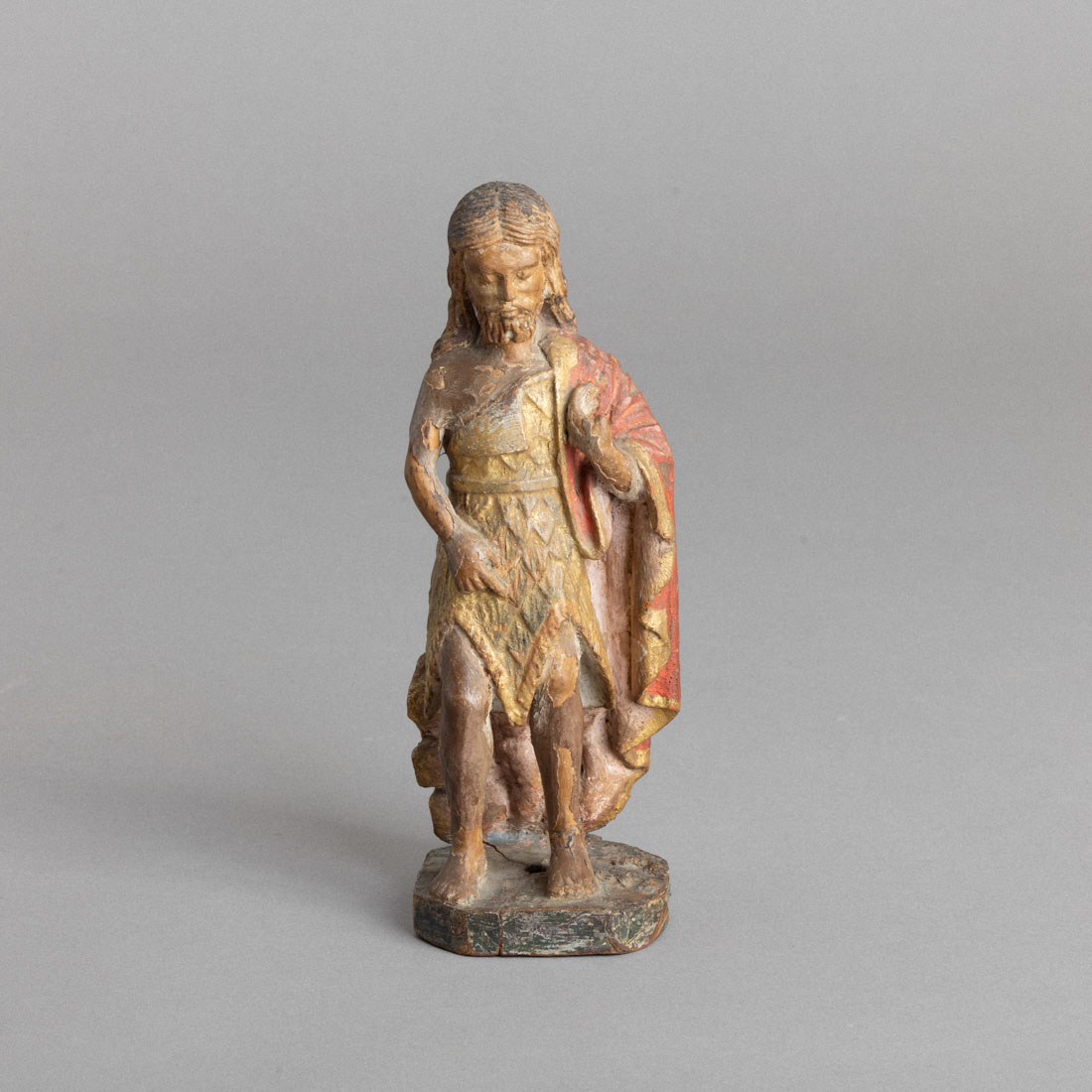 Escultura em madeira, decoração policromada e dourada. Séc. XVIII. Falhas, restauros e colagens.