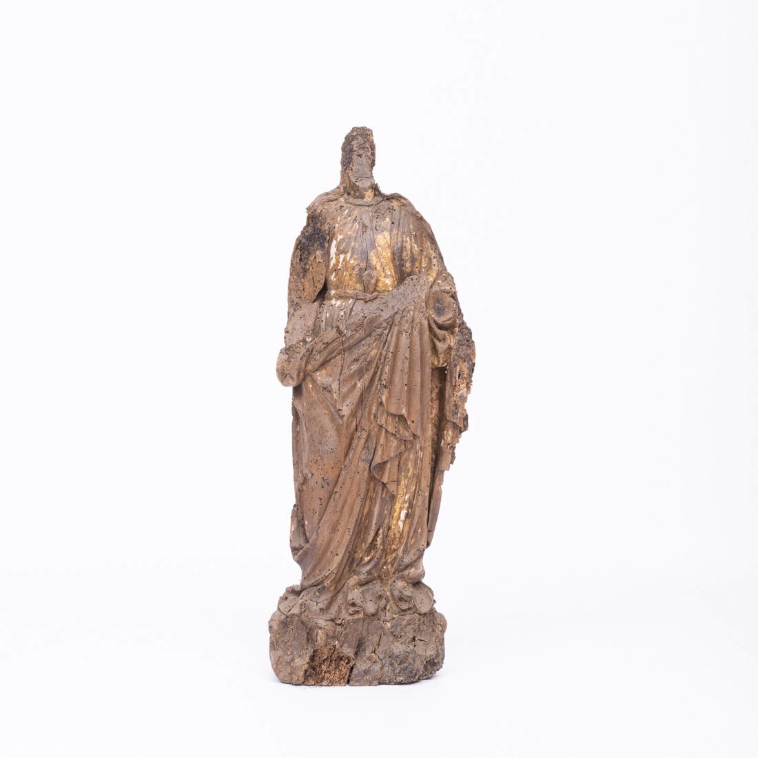 Escultura em madeira com vestígios de policromia. Séc. XVII. Inúmeras falhas, defeitos e de xilófagos.