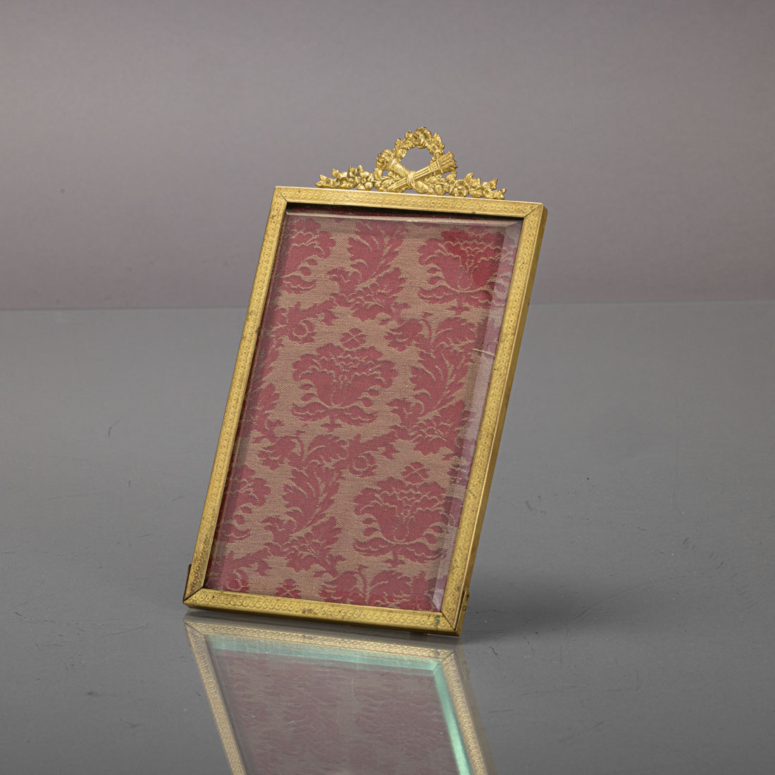 Em bronze dourado, frontão decorado com motivos florais e aljava com setas, vidro biselado. Sinais de uso.