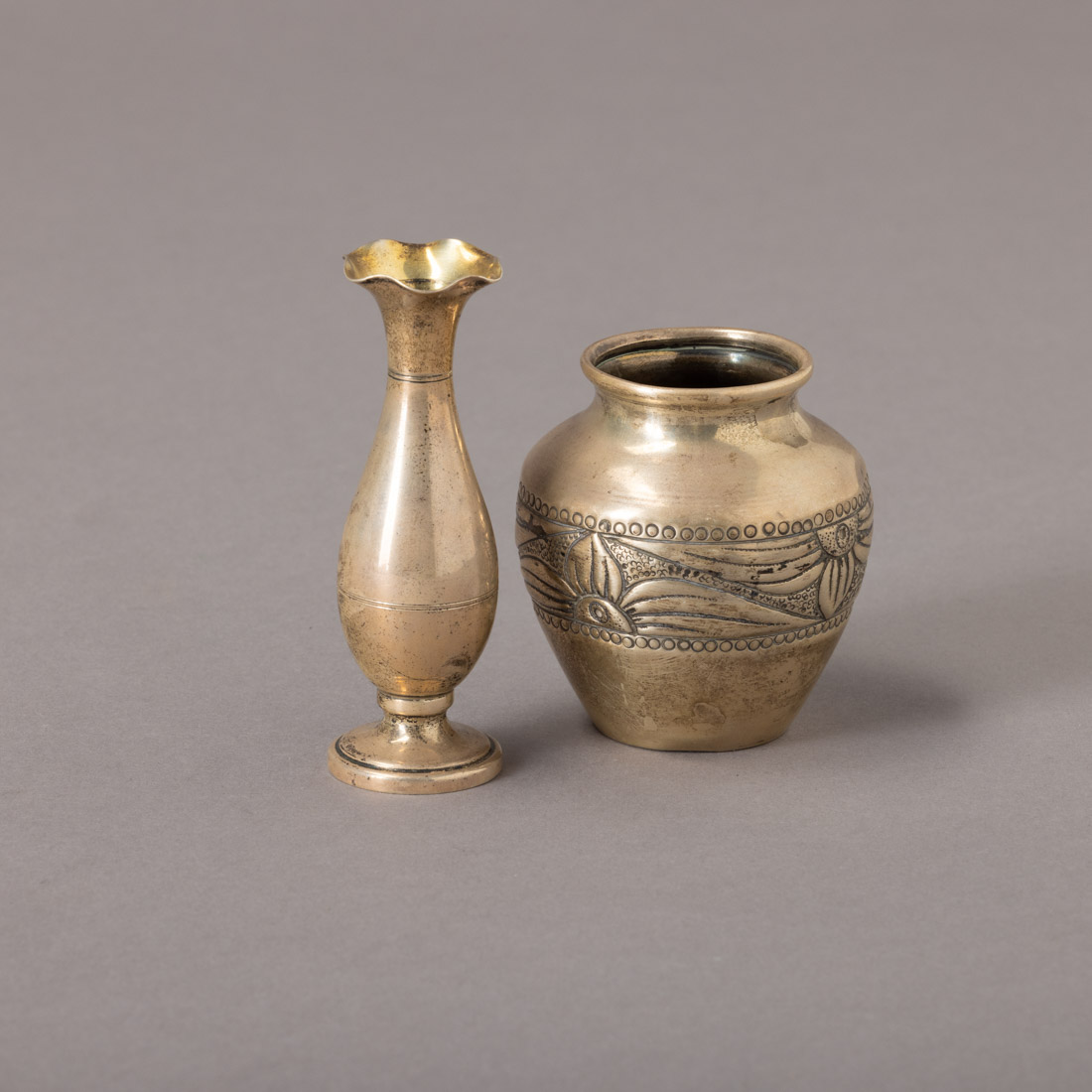 Em prata portuguesa contraste águia (1938-1984) de 833 e (pós 1985) de 835, decoração relevada e gravada "flores", outra lisa. Uma com pequenas amolgadela.