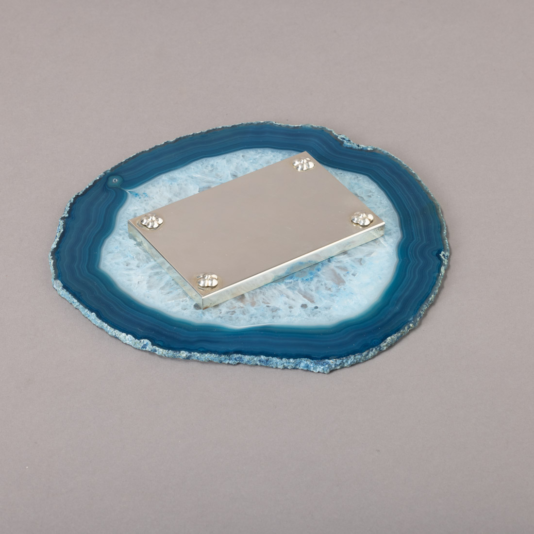 Em prata portuguesa contraste águia (pós 1985) de 925, base em ágata. Com caixa. Sinais de uso.